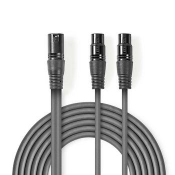 Symmetrisches XLR-Audiokabel | 3 Pin XLR - 2x 3 Pin XLR | 1,5 m | grau